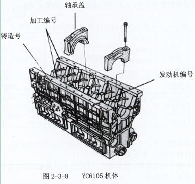 5.主軸承蓋須與機體配對,并且檔別也必須與機體的檔位對應,不能互換。每個機體側面都鑄有鑄造號,底面打有機體加工號,側面上打有發動機編號;每個軸蓋底面上打有加工和安裝序號及安裝方向(箭頭)。參閱圖2-3-8及圖2-3-9。