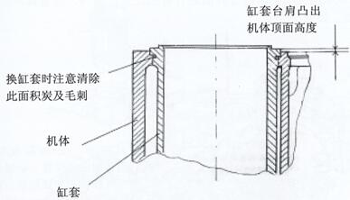 提示:檢測缸套臺肩凸出高度超差可把缸套互相調換試配來達到,要求相鄰缸套凸出高度不大于0.04mm
