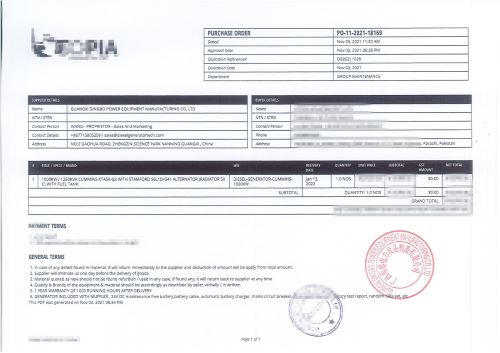 - 肯尼亞客戶與我公司簽訂一臺50KW玉柴發電機組配靜音箱合同 2022-03-04